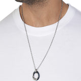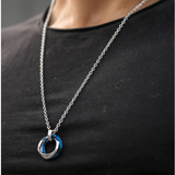 Enhance your look with silver-plated tri circle blue ring pendant necklace. It is a thoughtful gift for men and boys.
