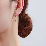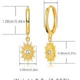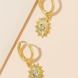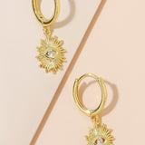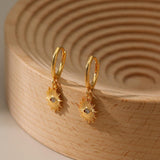 Unique and stylish 18K gold-plated huggie earrings with a white eye sun drop design, perfect for everyday elegance.