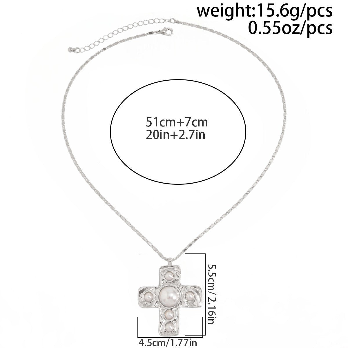 - Length of chain: 51cm + 7cm extender chain, cross: 5.5x4.5cm