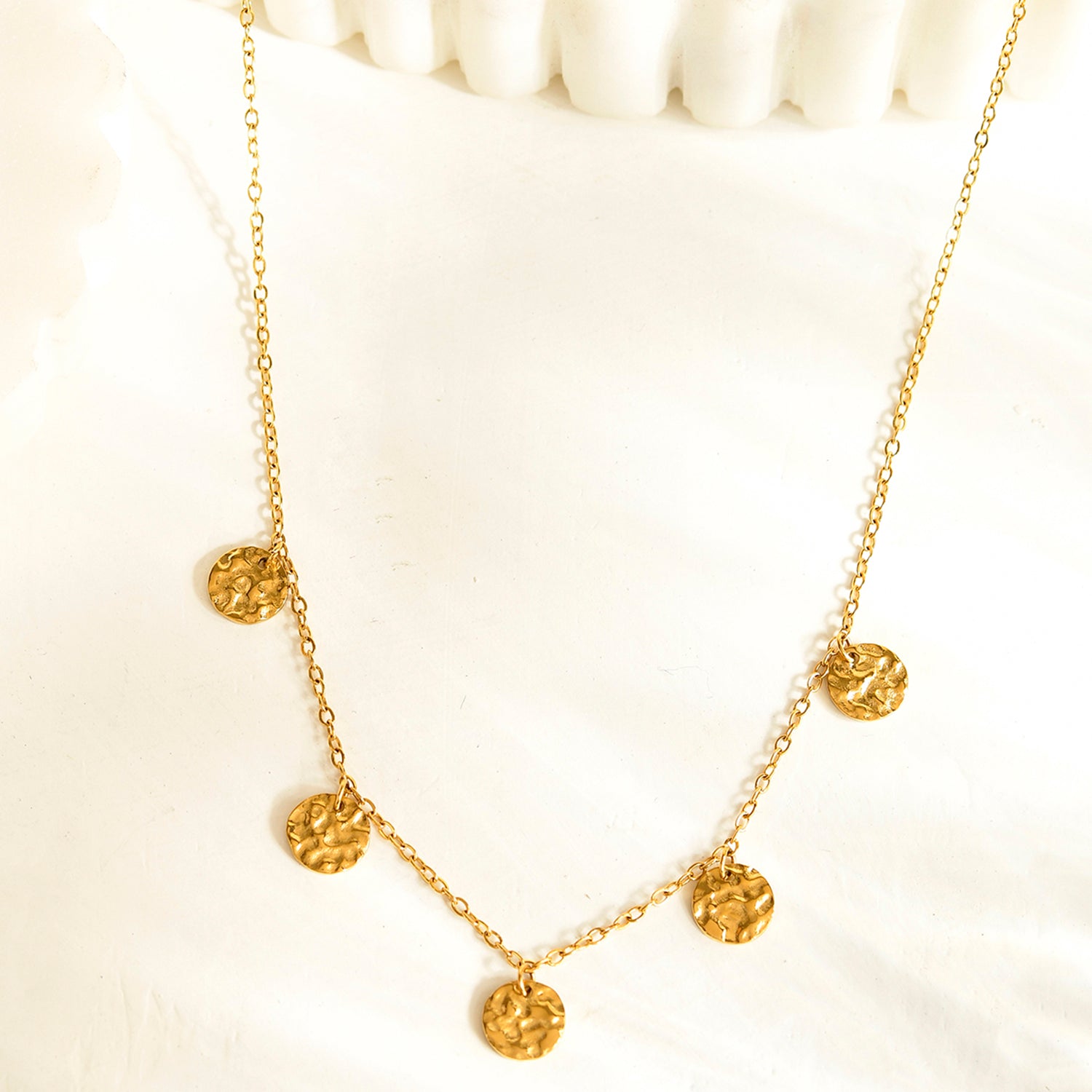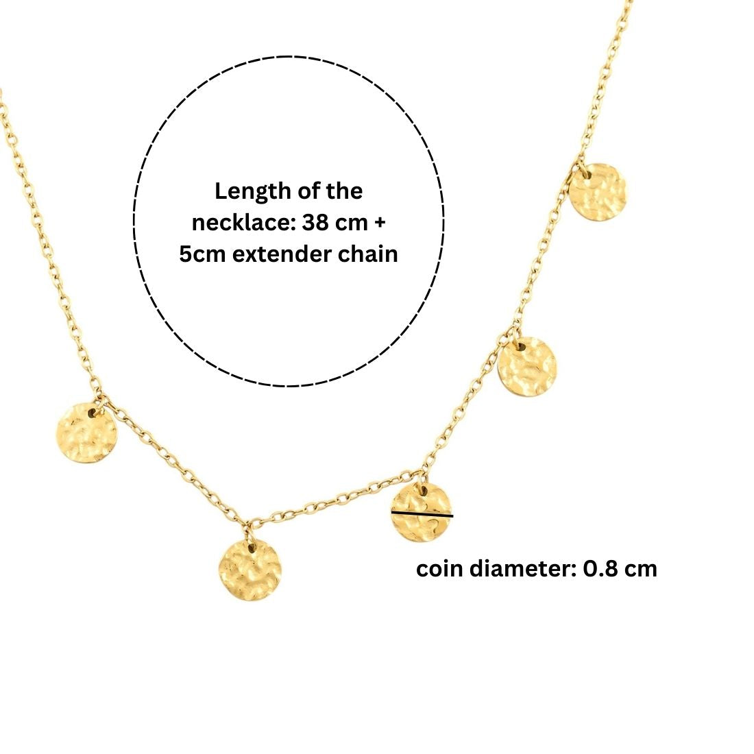 Charming 18K gold-plated coin drop necklace with waterproof and anti-tarnish finish, crafted for long-lasting elegance.