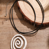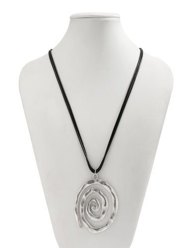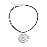 This silver spiral pendant with a hammered texture adds bohemian charm to any outfit, comes with an adjustable black cord, suitable for beach party and casual occasions.
