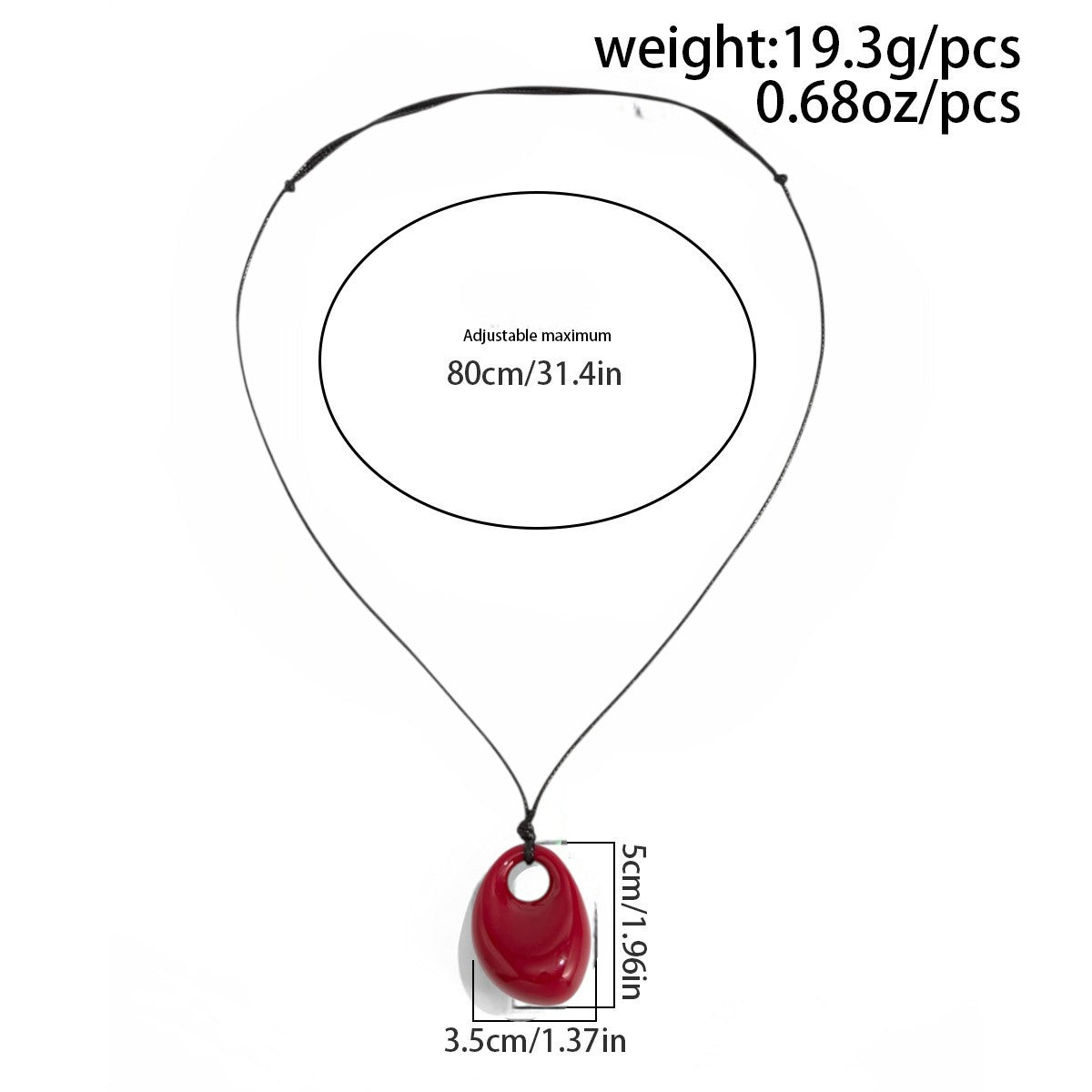 Bring a bold pop of color to your outfit with this red resin oval pendant necklace, suspended on an adjustable black cord. The fusion of earthy tones and vibrant resin creates a striking boho aesthetic that suits beachwear, casual ensembles, or artistic looks. A perfect accessory for free-spirited souls who love unique, handcrafted details.