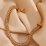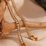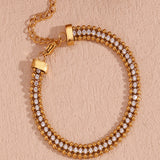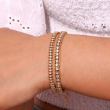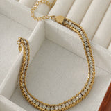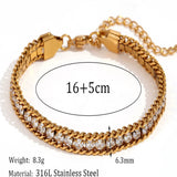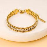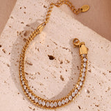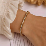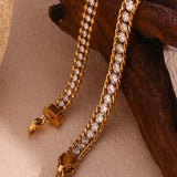 Introducing the AQUASTREET Elegant 18k Gold Plated White Cubic Zircon Stone Glossy Bracelet, a sophisticated accessory crafted for women and girls.