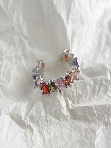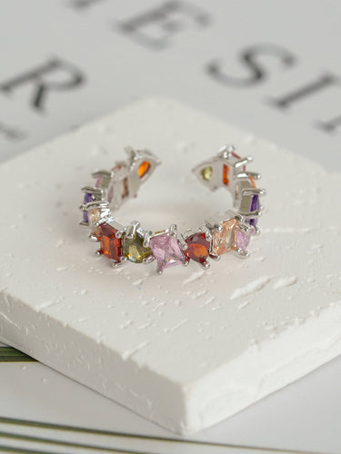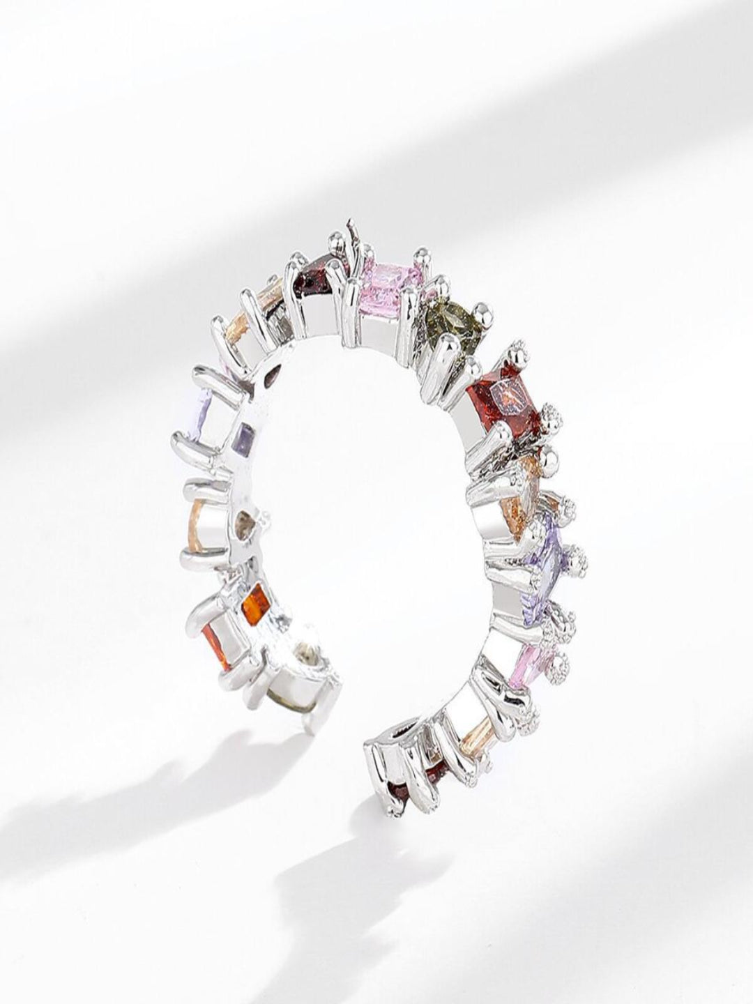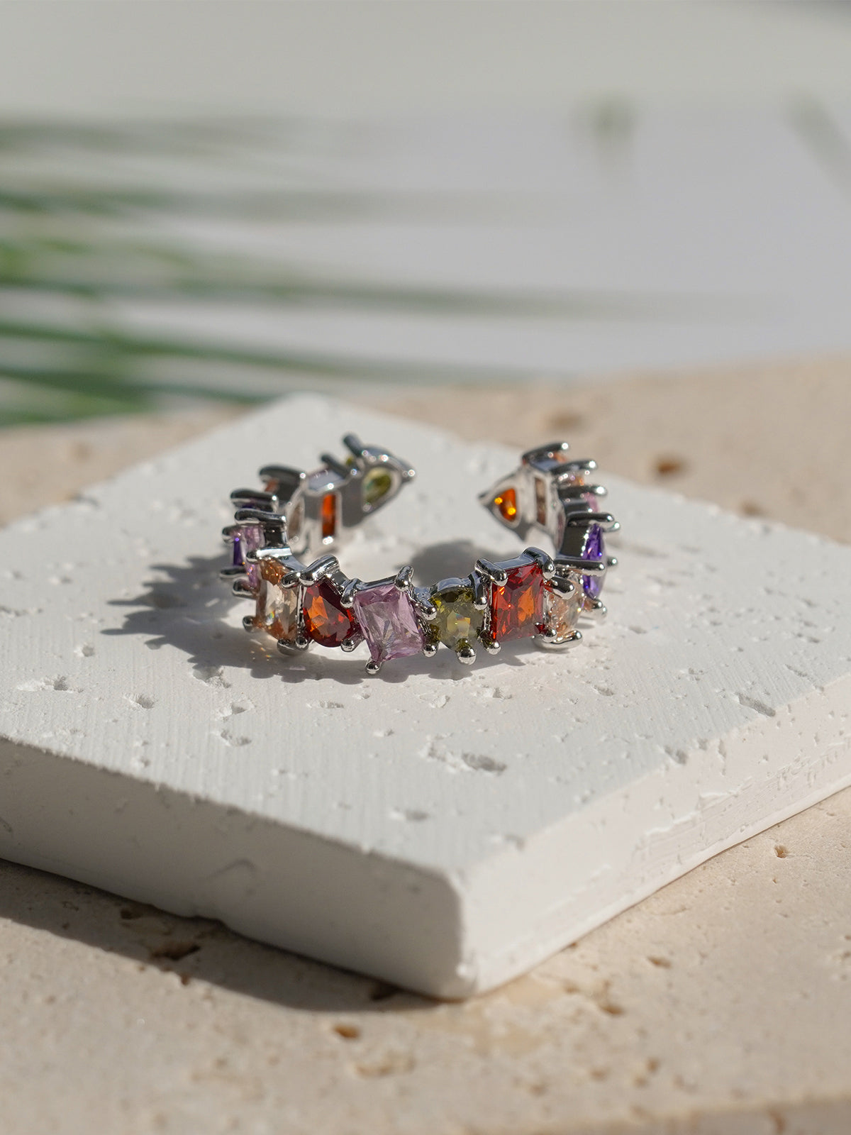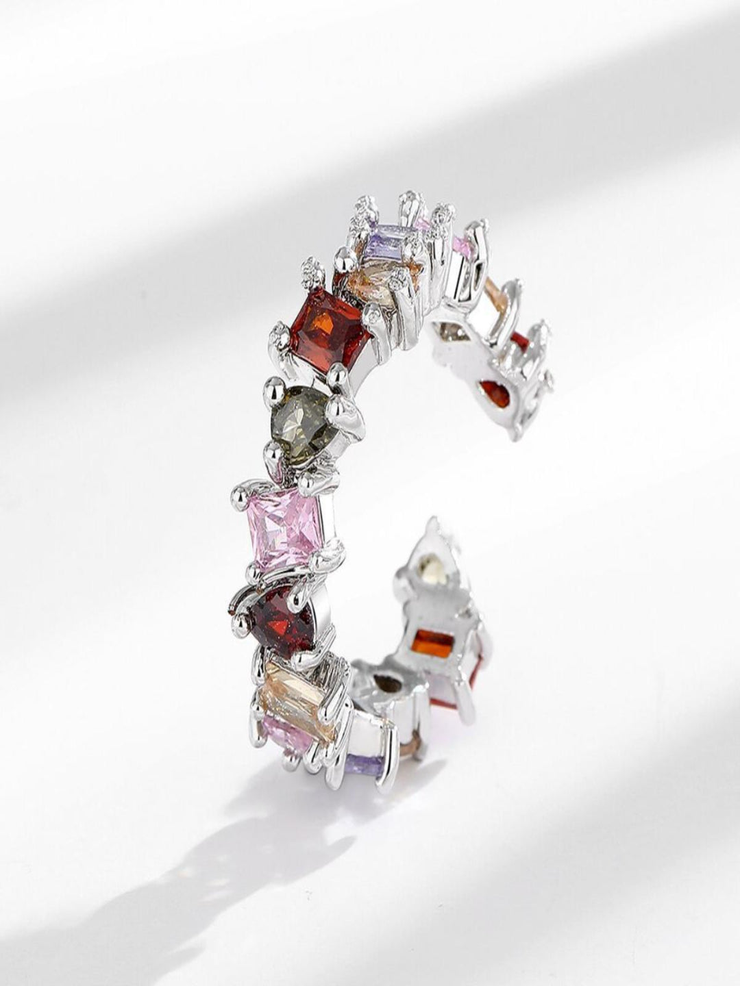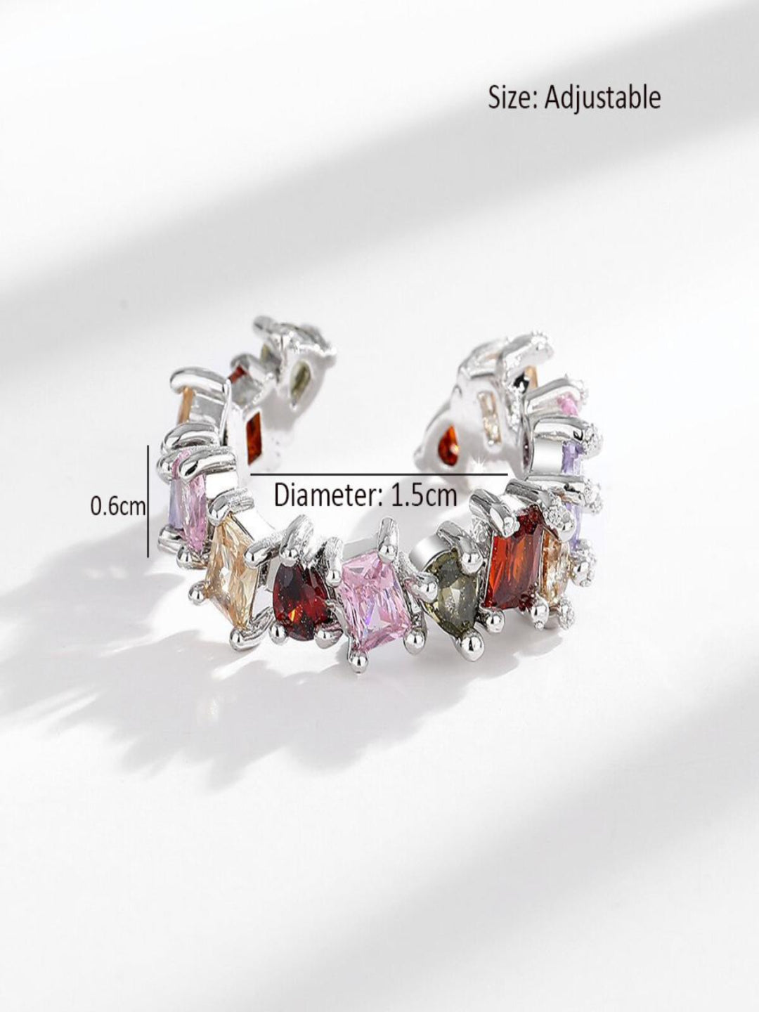 Ring in the Rainbow! Add a burst of color to your style with this eye-catching, silver-plated adjustable ring, set with sparkling, multicolor zircon stones. It’s a perfect piece for those who love to stand out.