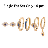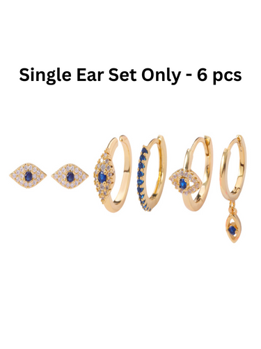 This evil eye earring set (for SINGLE EAR ONLY) brings together six stunning evil eye designs to stack, mix, and match. Each piece is crafted to ward off negativity while adding serious style points to your ear game. Protection has never looked this good. If you have always wanted a showstopper in your jewelry collection, then you’ve got it right here!