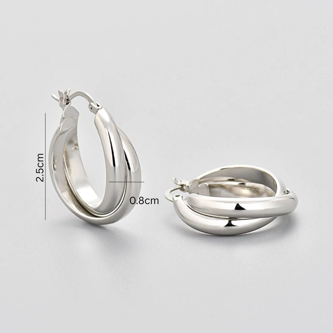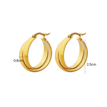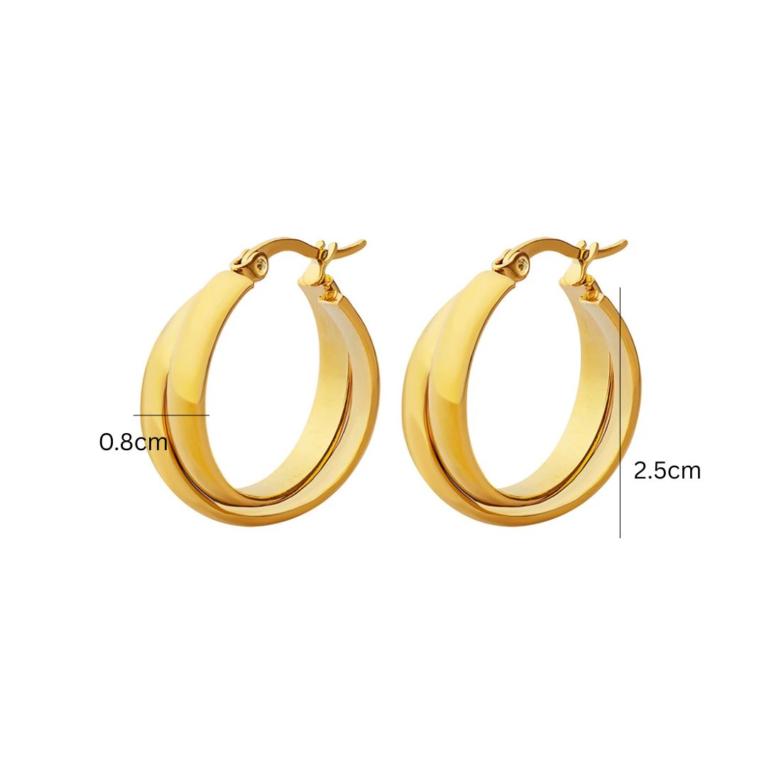The Nolira Hoop Earrings showcase a sculptural double-hoop silhouette with a sleek, polished finish—offered in both timeless gold and cool silver. Bold yet minimal, these earrings bring effortless sophistication to every outfit, making them your go-to for elevated everyday style. Crafted from titanium steel, vacuum-plated with three layers of 18K gold for lasting shine and durability.