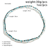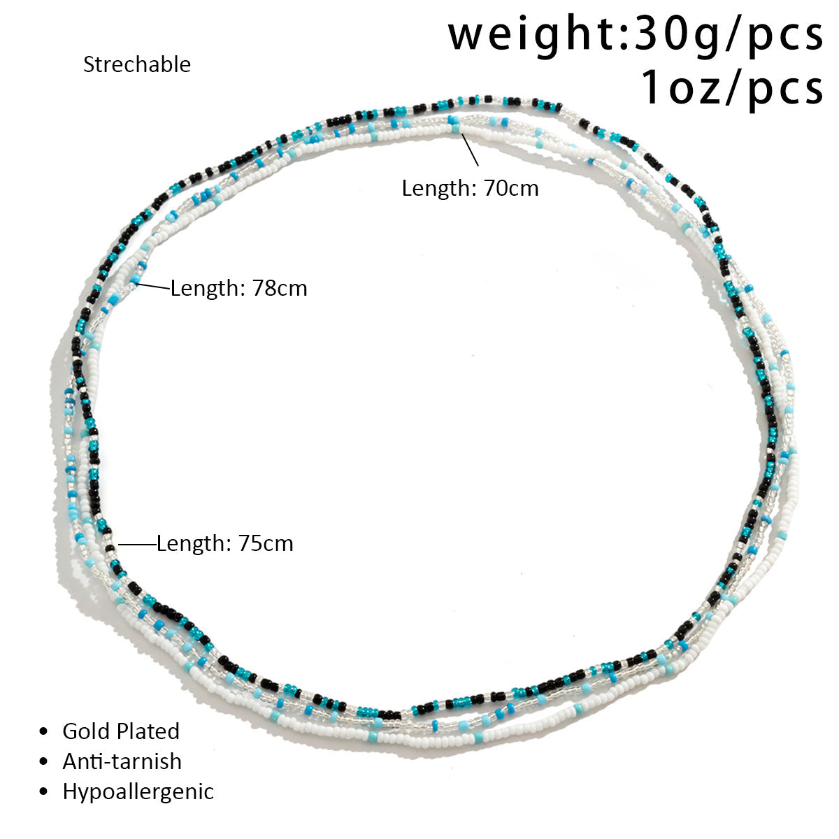Sunshine in every step! This earthy-toned Blue stretchable beaded waist chain set of 3 is made for your barefoot beach days and breezy getaways. Stack all three for that bold boho vibe or wear them solo for a hint of laid-back charm. Either way, your hip chains are ready to shine under the summer sun.