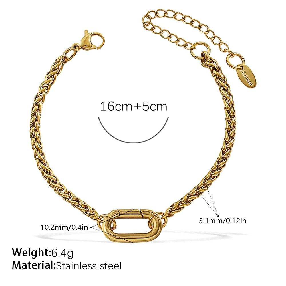 Designed with an open clasp for effortless personalization, this 18K plated linked chain bracelet lets you style it your way with added charms. Made from high-quality stainless steel, it is waterproof, anti-tarnish, and skin-friendly, ensuring lasting durability. The sleek, minimal design transitions seamlessly from daily wear to special occasions.