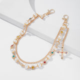 The Ophelia Layered Pant Chain is a bold fusion of elegance and edge. Featuring lustrous pearls, multicolored gemstones, and a striking cross pendant, this layered design elevates any outfit with effortless statement flair. Whether clipped onto denim, trousers, or styled as a versatile accessory, Ophelia adds a touch of opulent rebellion to your look.