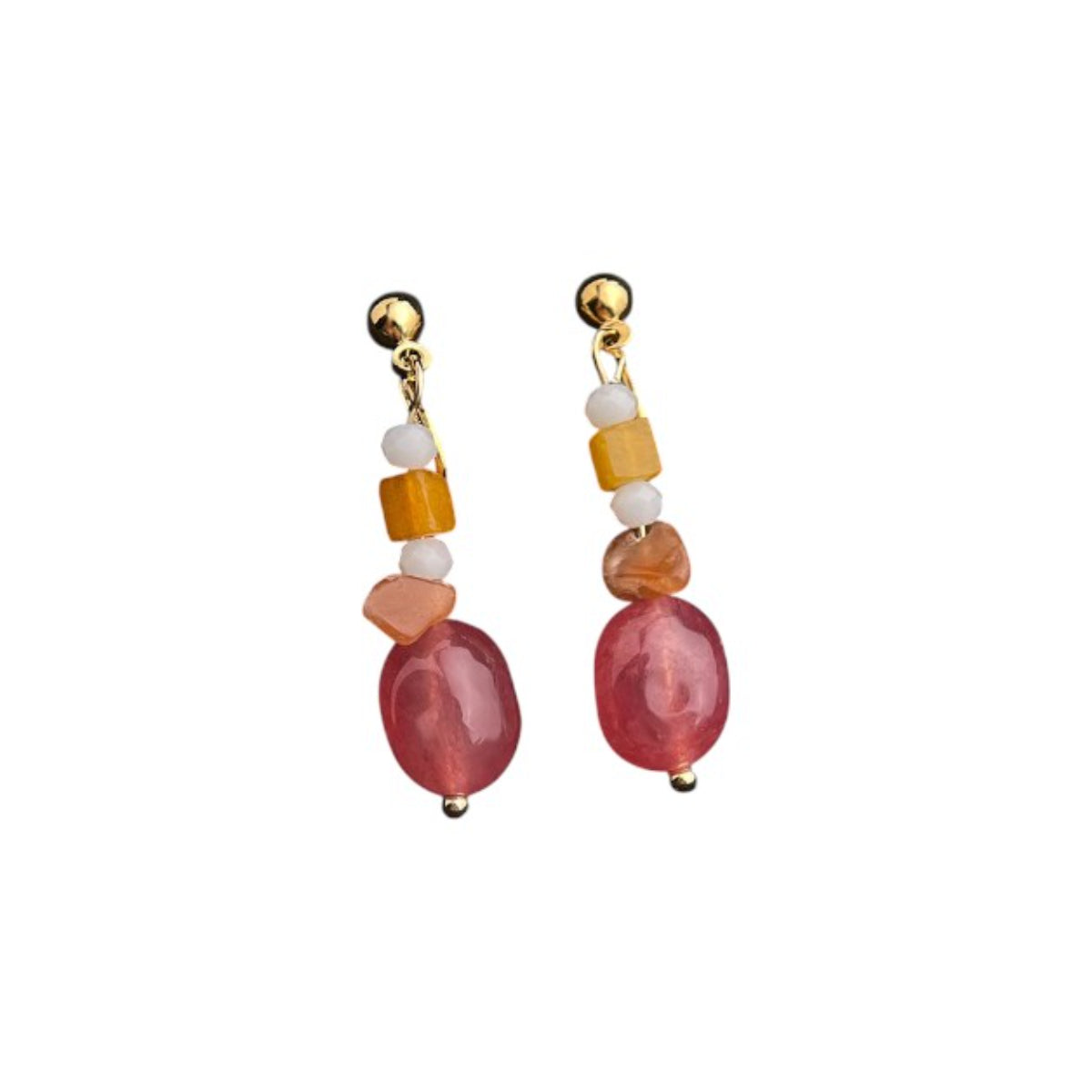 Bright and Bold! Add a pop of vibrant color to your look with these orange natural stone and pearl drop earrings – the perfect blend of playful and polished. You can easily style them with your casual or summery dresses to bring out the effortless charm