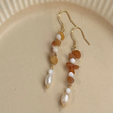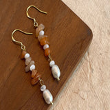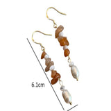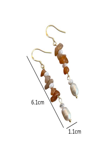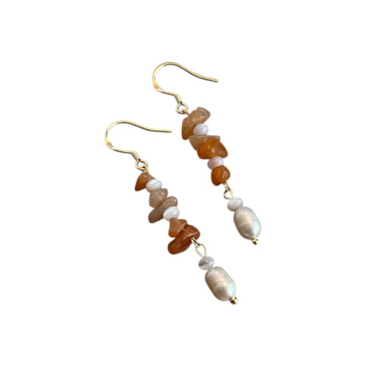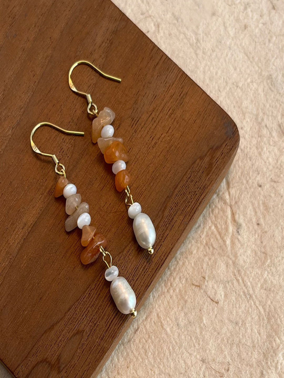 Bright and Bold! Add a pop of vibrant color to your look with these orange natural stone and pearl drop earrings – the perfect blend of playful and polished. You can easily style them with your casual or summery dresses to bring out the effortless charm