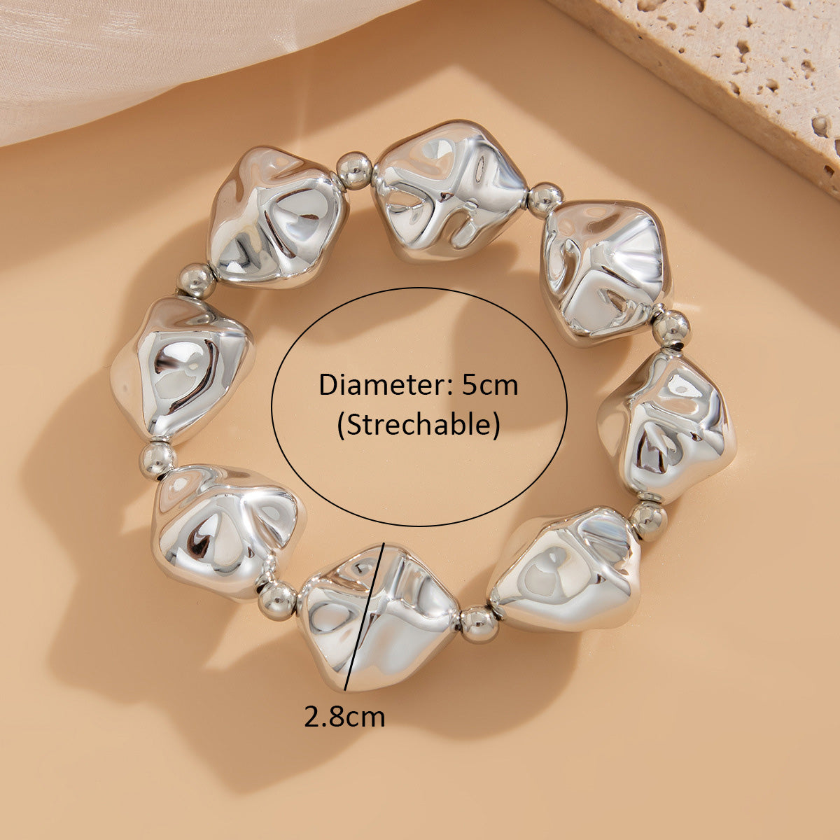 - Diameter: 5cm, bead design l:2.8 cm,width: 2.8cm (Stretchable)