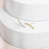 Elevate your style with these arc-shaped zircon ear crawlers that elegantly follow the curve of your ear. The sparkling zircons paired with sleek 14K gold plating make them a modern and versatile choice for both everyday wear and special occasions.