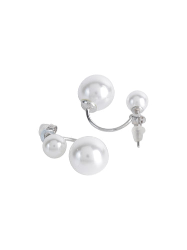 Elegant double pearl ear jackets that offer a versatile two-in-one look. Wear them as classic studs or with the jacket for a chic, layered style.