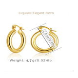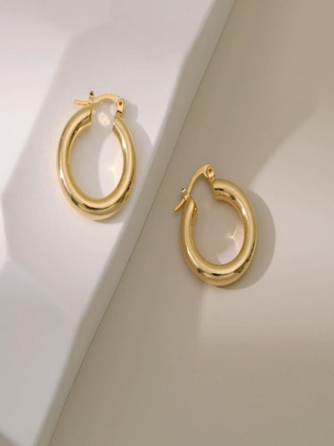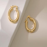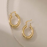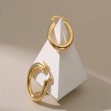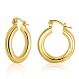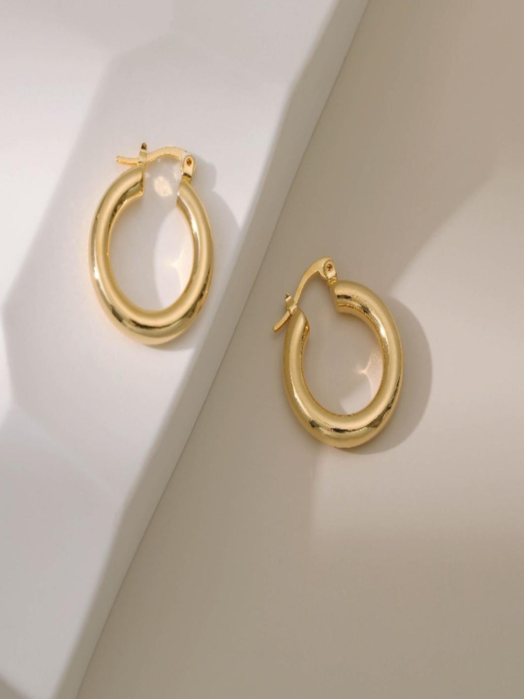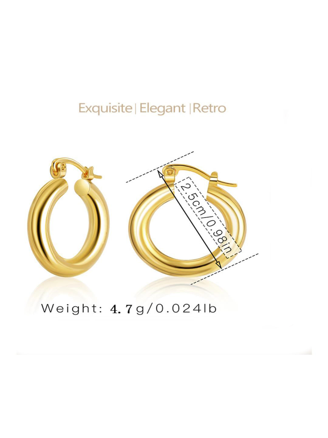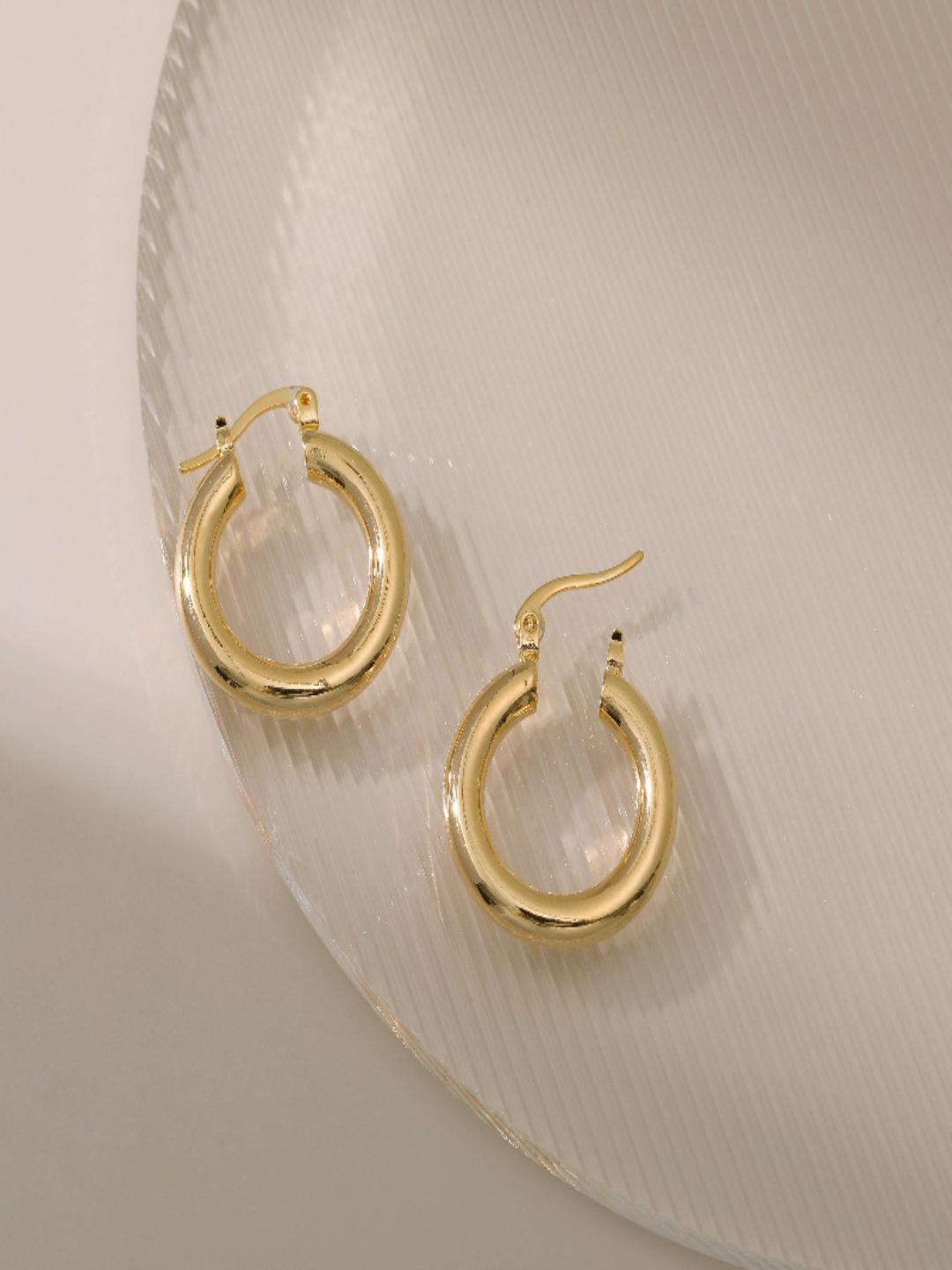 These short, thick hoop earrings are plated in 18K gold, combining simplicity with elegance for a minimalist style.