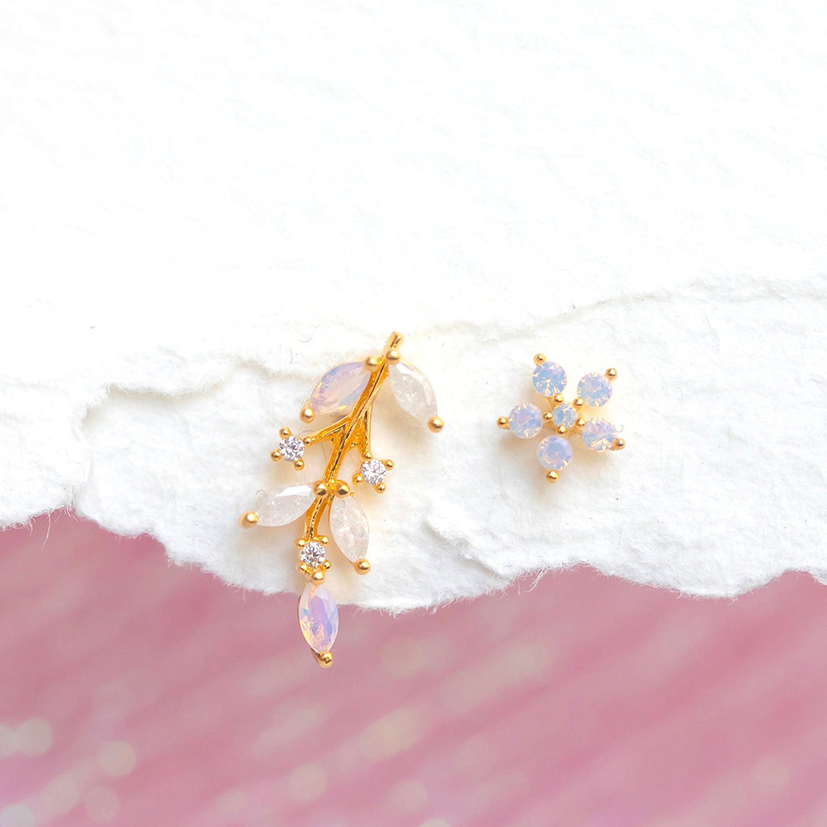 Petal & Twig Earring Set (for SINGLE EAR ONLY) | 18K Plated