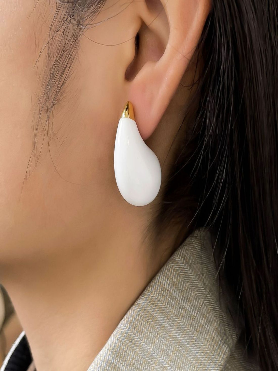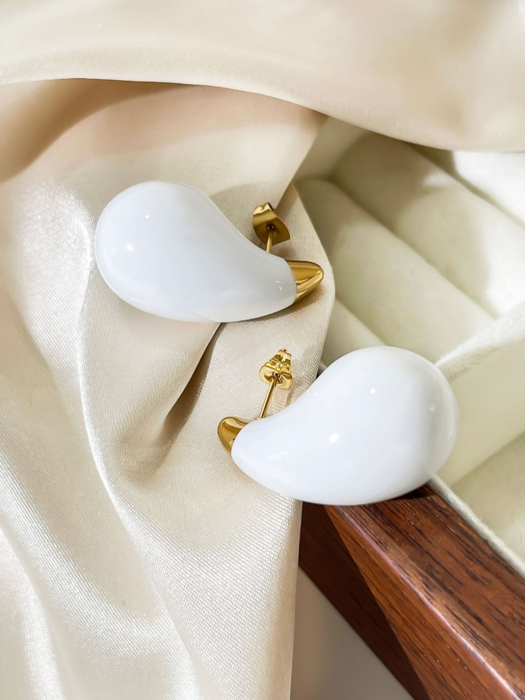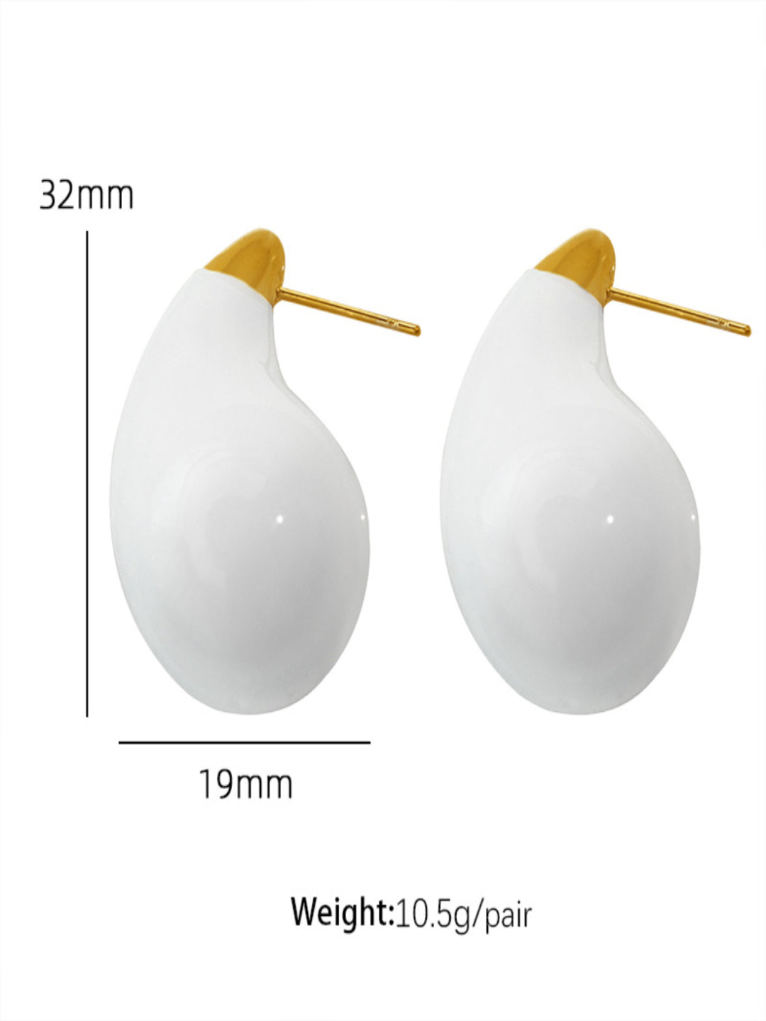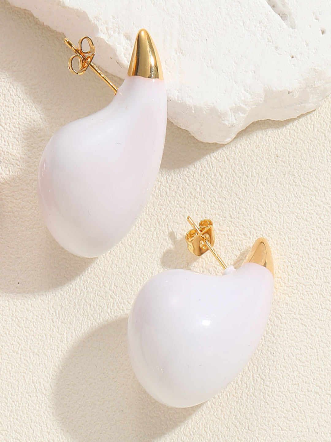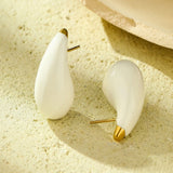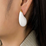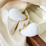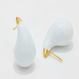 Elevate your style with these elegant 18k gold plated white big tear drop stud earrings, making a bold statement look