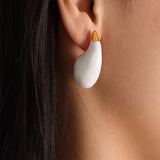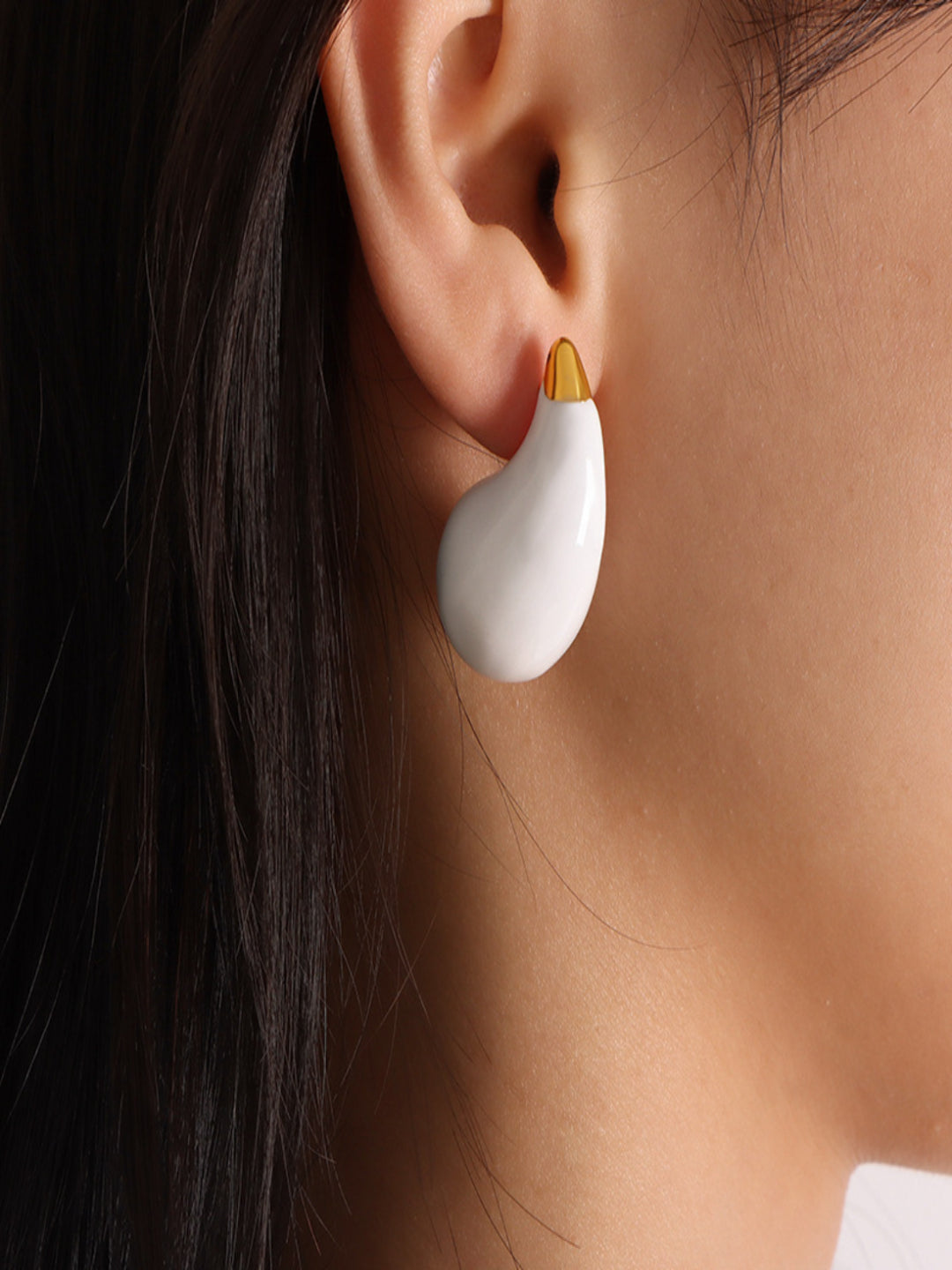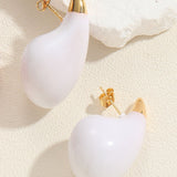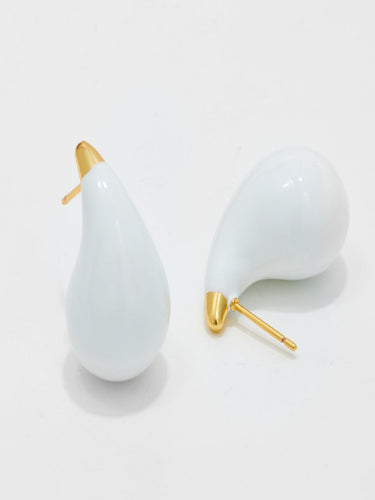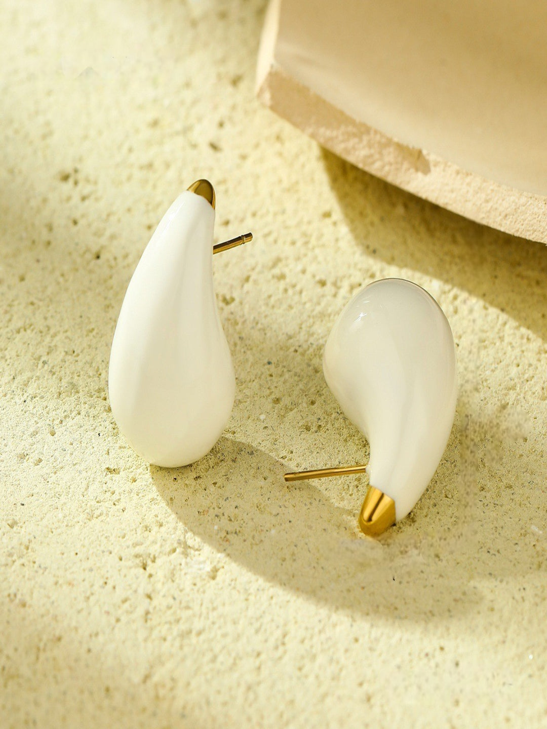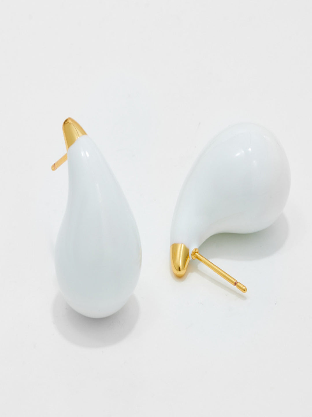 Elevate your style with these elegant 18k gold plated white big tear drop stud earrings, making a bold statement look
