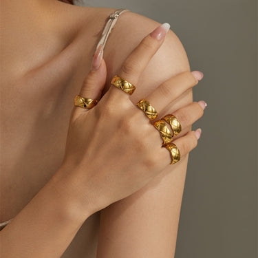 Love a little detail without the drama? This set of 2 quilt grid rings feature a subtle quilted texture that’s all about quiet elegance. It’s the kind of piece you’ll reach for every day—clean, chic, and effortlessly stylish. Wear it solo for a sleek look or stack it up to make it your own.