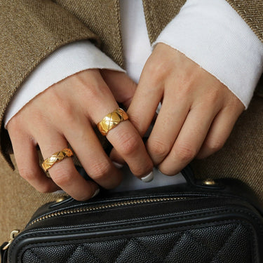 Mens Quilt Grid Ring (Set of 2) | 18K Plated