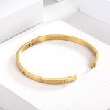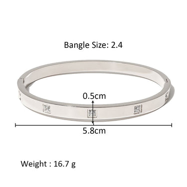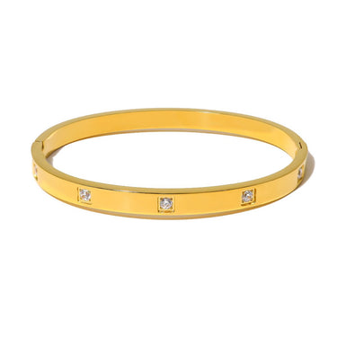 A timeless and elegant open bangle bracelet with sparkling square shaped zircon stones.