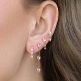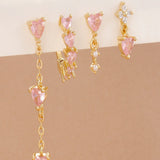 This 18K gold-plated pink heart zircon earring set is a dreamy blend of elegance and charm, designed exclusively for a single ear. Featuring a set of 4 uniquely crafted pieces, each earring combines the sparkle of high-quality zircon stones with the warmth of gold plating, while the soft pink heart design adds a sweet, feminine touch. Perfect for multi-piercing styling, these minimal yet eye-catching pieces can be mixed and matched to create your own curated ear look. Crafted from anti-tarnish materials, they promise lasting shine and durability, making them ideal for everyday wear or special occasions. Whether worn alone for a subtle statement or layered together for a bold ear stack, this set is a must-have for women and girls who love dainty, versatile jewellery.