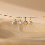 A modern twist on timeless elegance. This round charm features a pearl, creating a striking yet minimal look. Its unique shape and natural pearl texture make it a standout piece, while the waterproof and anti-tarnish finish ensures it remains radiant through daily wear. Perfect to pair with your favorite chains or lockets, this charm adds a sophisticated, dainty touch to any jewelry stackâan elegant choice for gifting or personal styling.