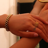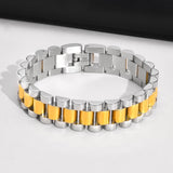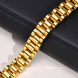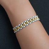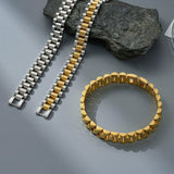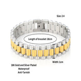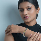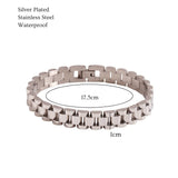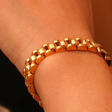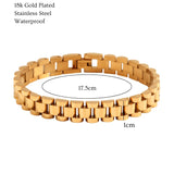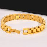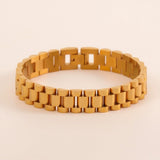 This bold plated wide-link bracelet combines classic style with a secure clasp for everyday comfort. Durable and versatile, it’s perfect for any outfit or a thoughtful gift for special occasions.