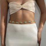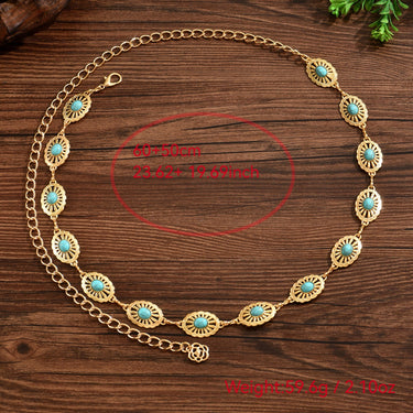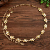 Add a touch of ocean-inspired charm with this gold-plated waist chain featuring elegant oval stones. Its dainty design blends boho beauty with vacation-ready glam, making it a statement piece for skirts, beachwear, or festive outfits. A stunning fusion of elegance and wanderlust for women who love to accessorize with flair.