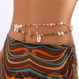 Double the chains, double the fun! This beautifully crafted set of two waist chains, featuring cowrie shells and accented with green and brown beads, adds a bohemian touch to your look. Wear them together for a bold statement or separately for a more subtle vibe—either way, you'll be embracing your inner free spirit in style.