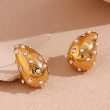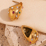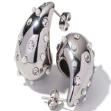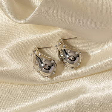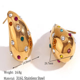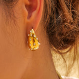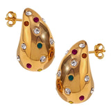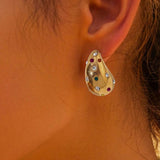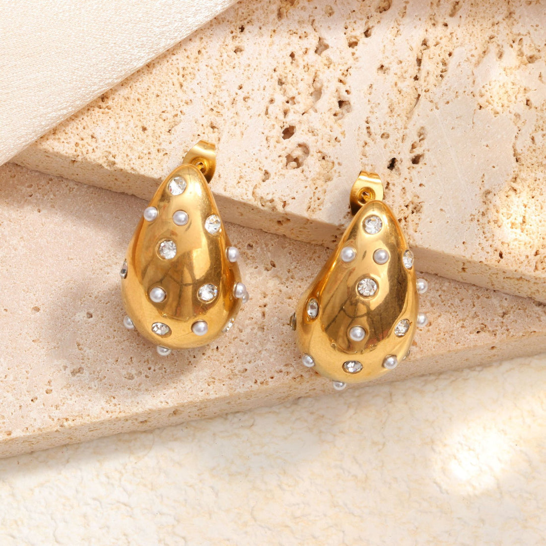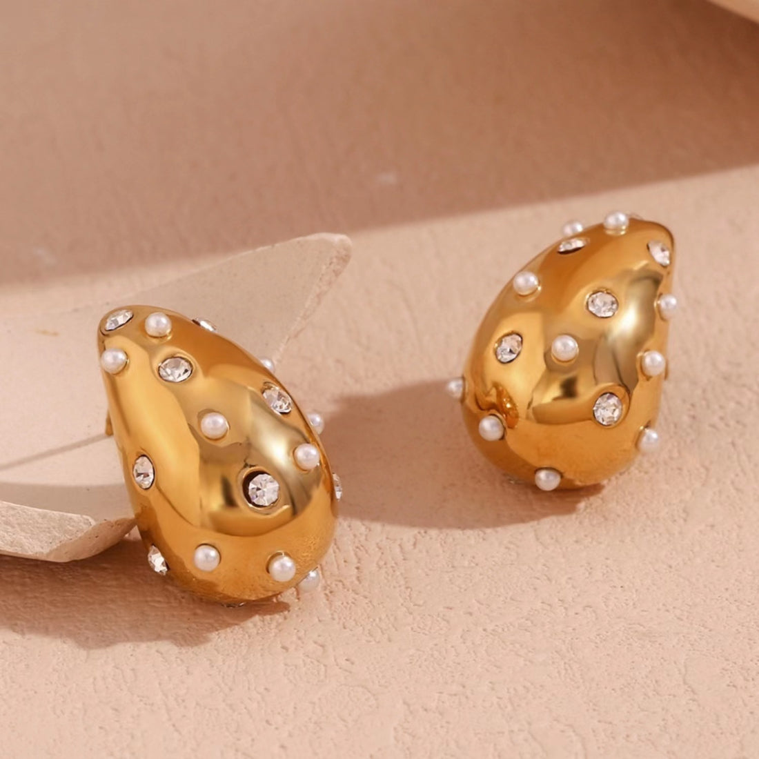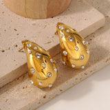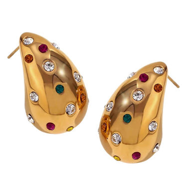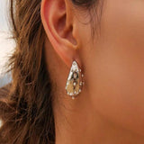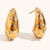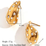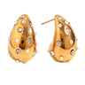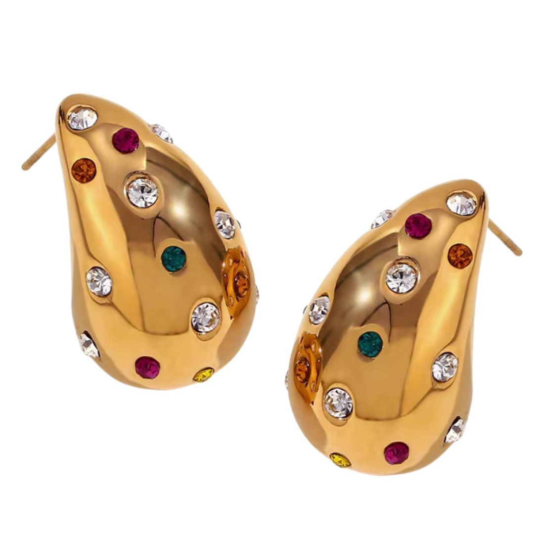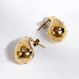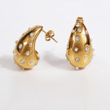 Bottega with a twist ! Presenting 18k plated zircon encrusted teardrop earrings, a stunning piece that reflects sophitication and grace. This gold plated earring is made of high grade stainless steel and is the perfect accessory to elevate any outfit, whether it’s a casual day out or a special event.