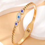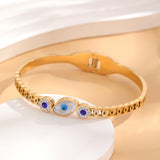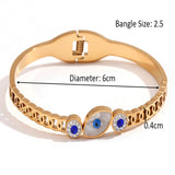 Crafted from high grade stainless steel, this AQUASTREET timeless elegance, modern design 18K gold plated Evil Eye Bangle Bracelet crafted for women and girls, boasts of