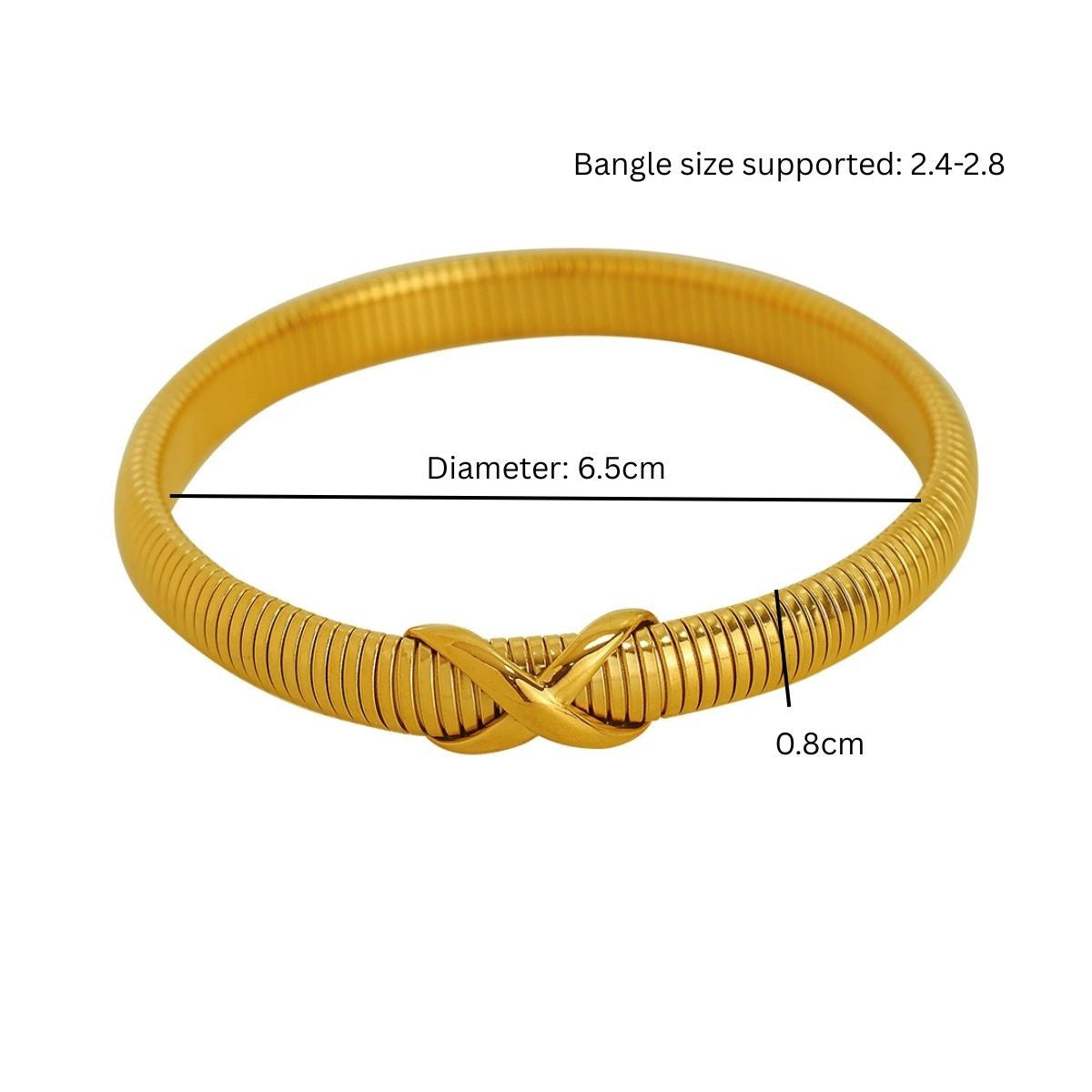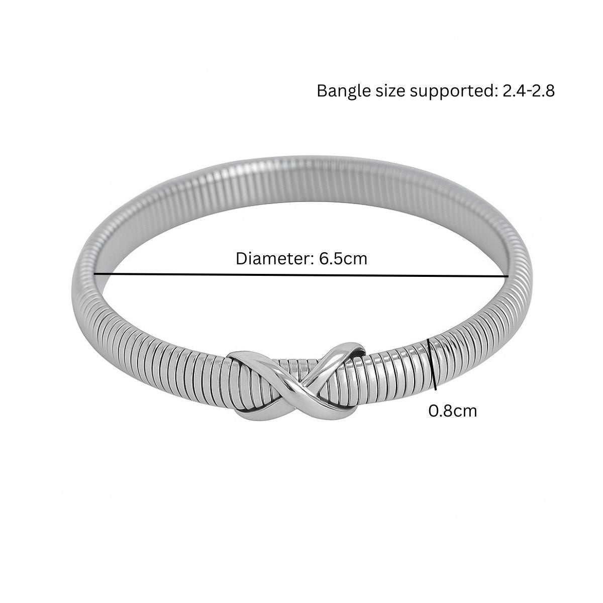 - Inner diameter: 6.5cm, width: 0.8cm, fits bangle size: 2.4-2.8