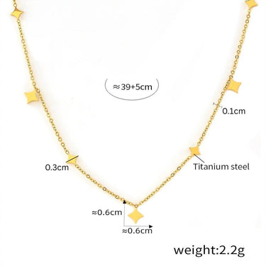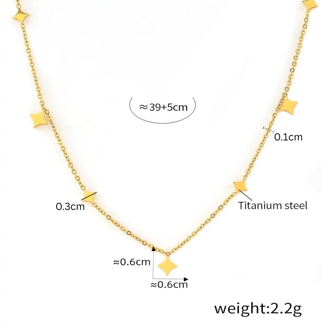 This Set of 2 - Star Charm and 2mm Snake Chain Layered Necklace is where delicate design meets celestial charm. Crafted with a fine titanium steel chain and accented with dainty four-pointed star charms & a 2mm snake chain, it sparkles like scattered moonlight on your skin. Crafted from titanium steel, vacuum-plated with three layers of 18K gold for lasting shine and durability. Its reflective finish adds a liquid-gold glow to your look, whether you're layering it with daintier chains or letting it shine solo.