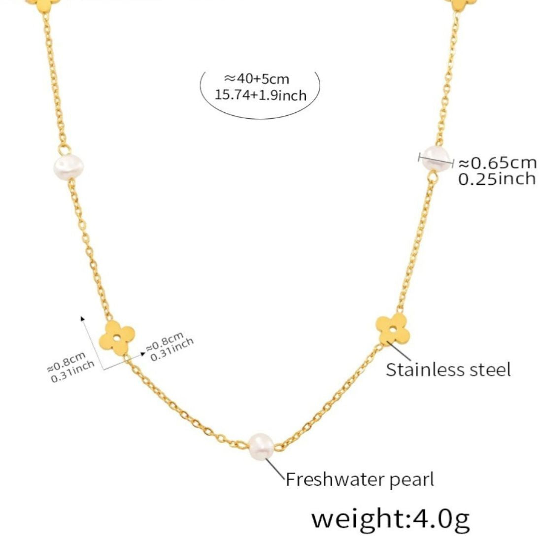 - Length of necklace: 40cm + 5cm extender chain, pearl: 0.65cm, clover: 0.8cm