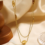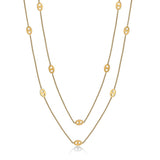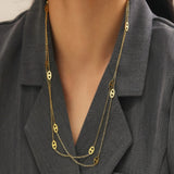 This Layered Necklace features a double-layered 18K gold-plated chain with oval shaped open cut double D design, perfect for casual or formal wear. This is also called pig nose chain.
