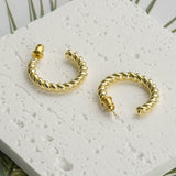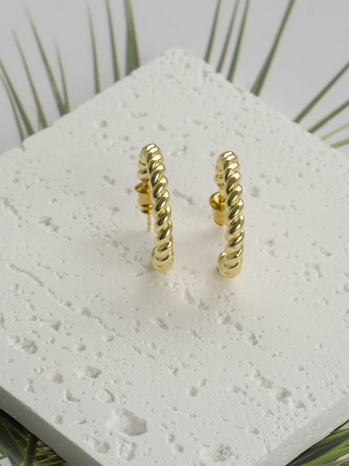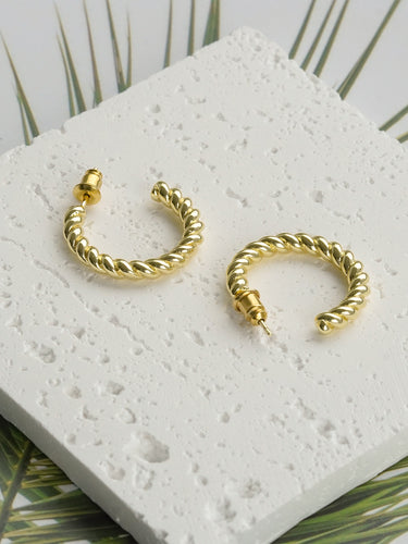 Make a stylish statement with 14K gold-plated spiral hoop earrings – lightweight, trendy, and versatile for everyday wear.