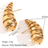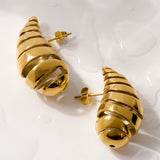 Indulge In The Timeless Elegance Of Aquastreet 18K Gold-Plated Spiral Hollow Water Drop Shaped Earrings. Crafted With Precision, These Earrings Are Plated With 18K Gold, Ensuring A Luxurious And Radiant Finish. The Earrings Are Made Of High Grade Stainless Steel. The Unique Textured Design Adds A Touch Of Sophistication, Making Them A Versatile Accessory For Both Women And Girls. With Anti-Tarnish Properties, These Earrings Maintain Their Brilliance Over Time, Offering Enduring Beauty. Hypoallergenic, And Stylish, They Are The Perfect Choice To Elevate Your Look And Make A Statement For Any Occasion.