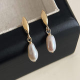 Simply Pearlf-ect! These 14K gold-plated, anti-tarnish earrings feature dainty, minimal pearl drops that add a touch of classic elegance to your everyday style. Perfect for those who like to keep it simple yet stunning.