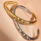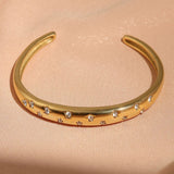 A celestial-inspired cuff bracelet adorned with shimmering zircon stars.