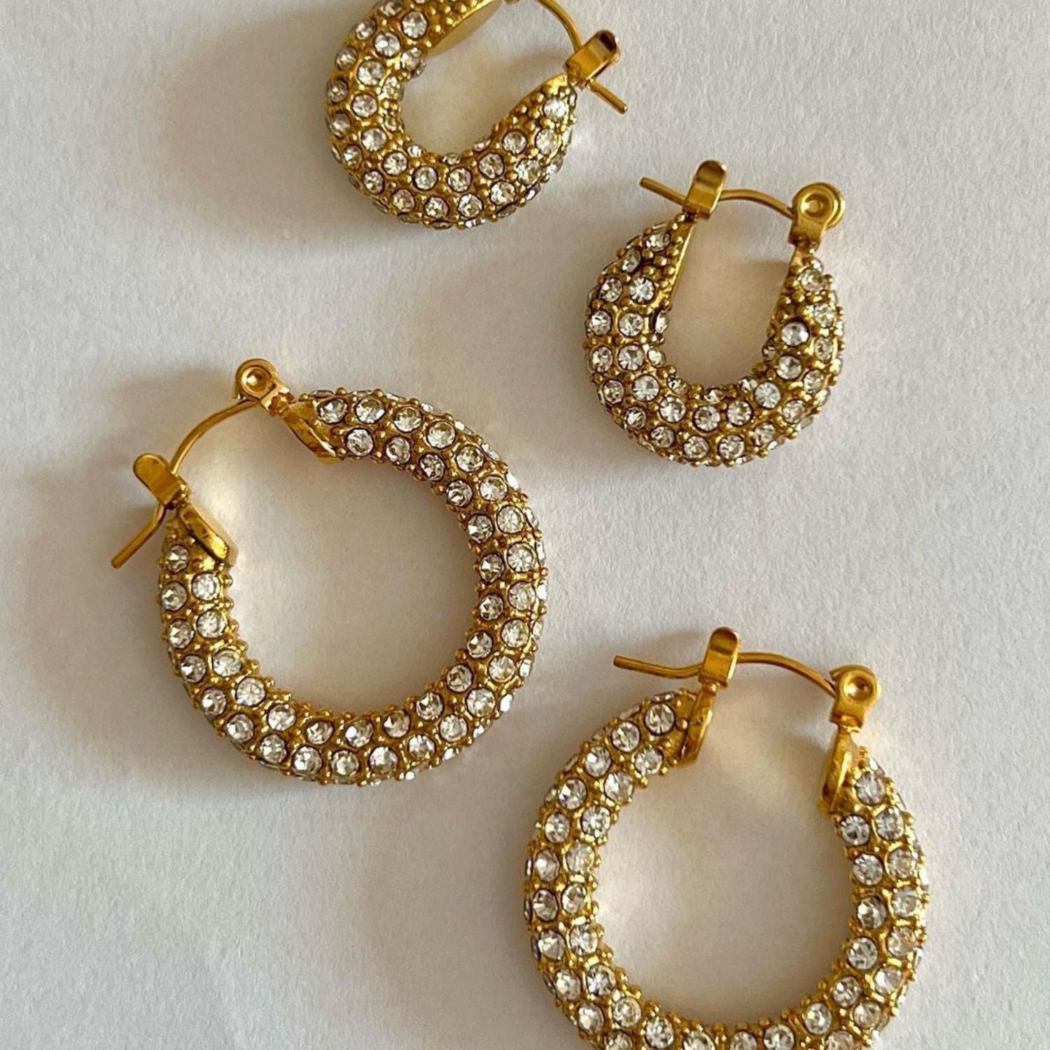 The Starfall Hoops are a truly magnificent pair, designed to capture the essence of a starry night sky. The two rows of brilliantly cut pavé stones create a dense field of sparkle, completely encircling each golden hoop. The radiant design ensures they catch and reflect light from every angle, making the Starfall Hoops the perfect accessory for adding a touch of breathtaking brilliance to your look.