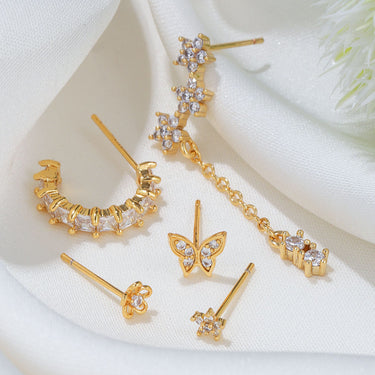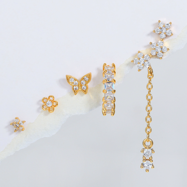 Sprinkled with magic, Starfetti Floral Earring Set for LEFT EAR ONLY is a playful celebration of stars, florals, and fluttery dreams. This earring set brings together twinkling studs, delicate drops, and a charming butterfly — like confetti for your ears. Whether you're stacking them up or wearing a solo sparkle, Starfetti lets your style shine in the cutest way possible.