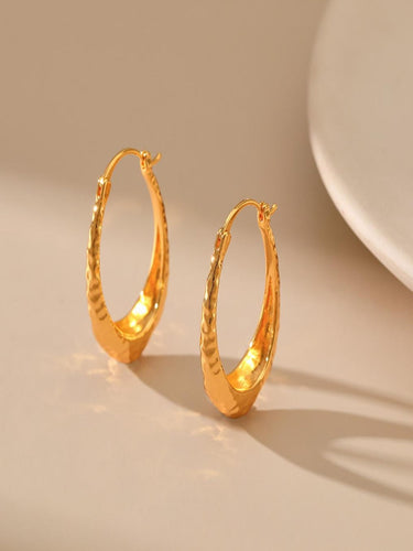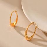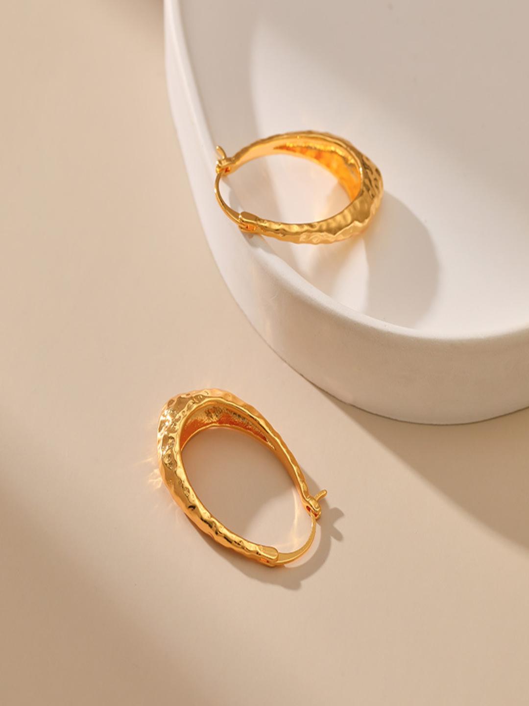 These textured round hoop earrings are plated with 18K gold, offering a sophisticated and radiant finish, suitable to worn with any outfits