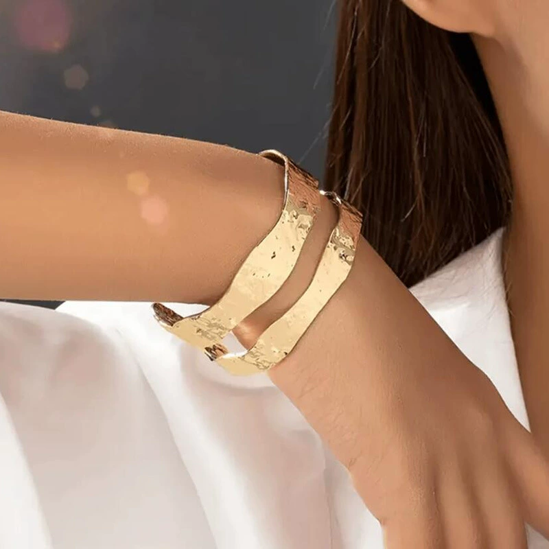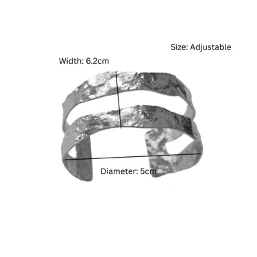 A striking 2 Layer Hammered Cuff Bracelet featuring textured metal bands stacked into one bold silhouette. Waterproof, anti-tarnish, skin-friendly, and adjustable, it offers a comfortable fit for all-day wear. The hammered finish adds an artisanal, handcrafted charm. Style it with minimal outfits, rolled-up sleeves, or evening ensembles for an instant statement.