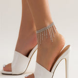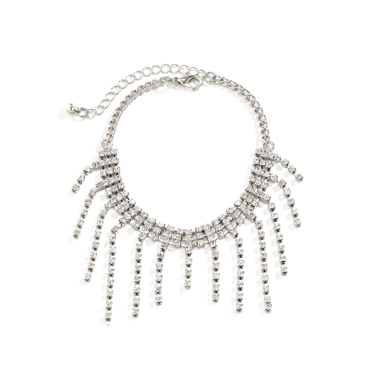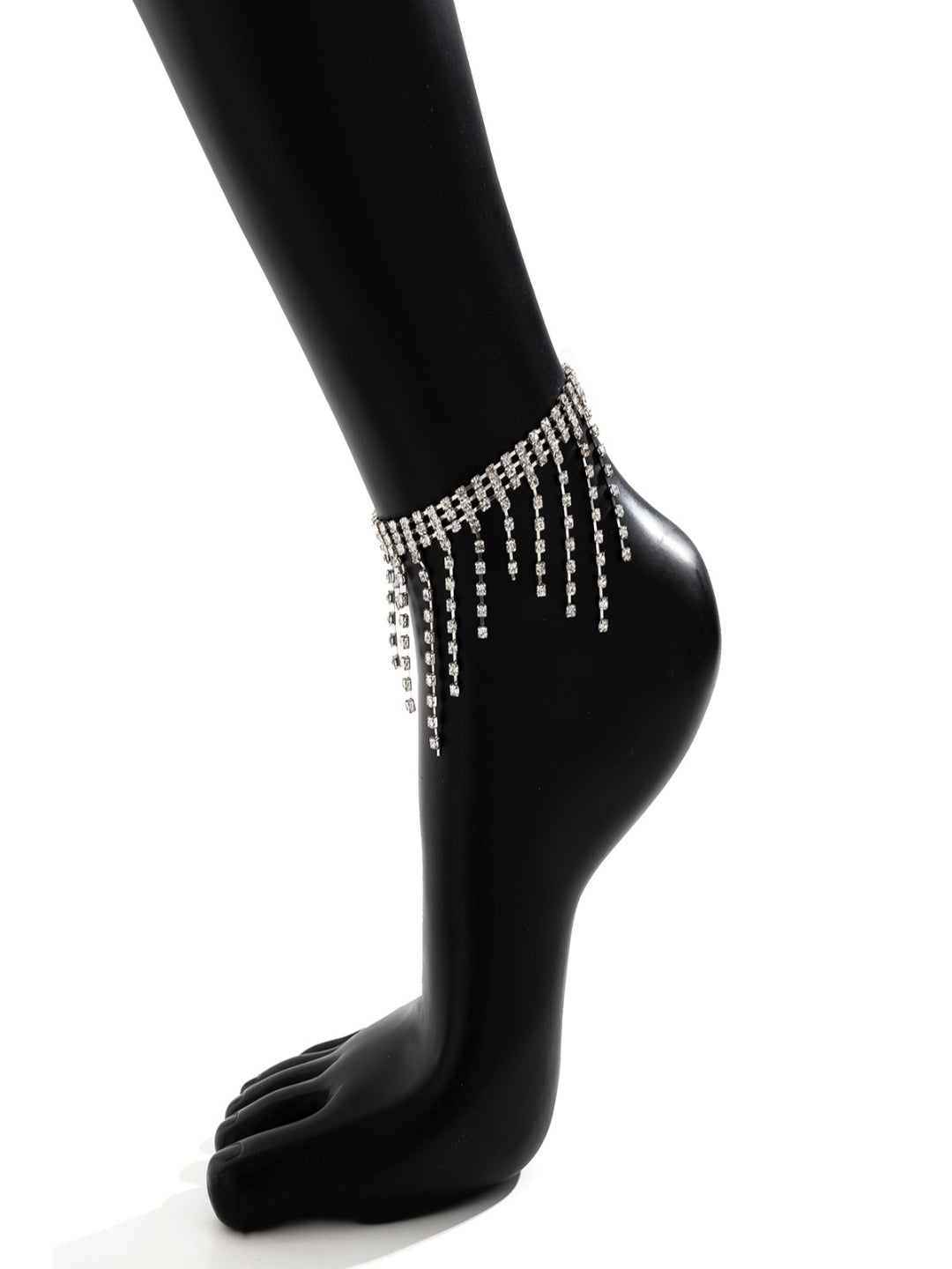 A rich tassel drops rhinestone anklet (single) that is wearable with sarees and western gowns. Hence a must have in your collection