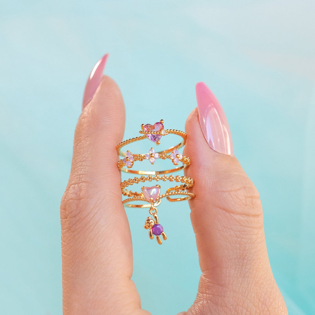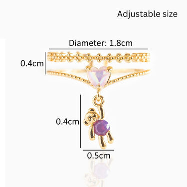 A playful and charming teddy bear ring, holding a heart-shaped balloon and adorned with sparkling zircon stones. A gift that speaks love