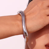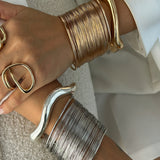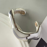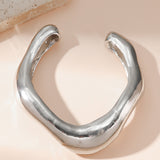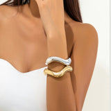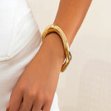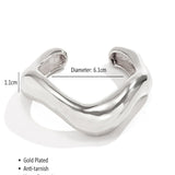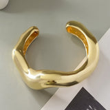 Ride the style wave with this trendy, irregular open cuff bracelet! Its unique, flowing design in gold-plated adds a modern, artistic touch to any look. Easy to slip on and a total statement piece. Get noticed with this must-have arm candy!
