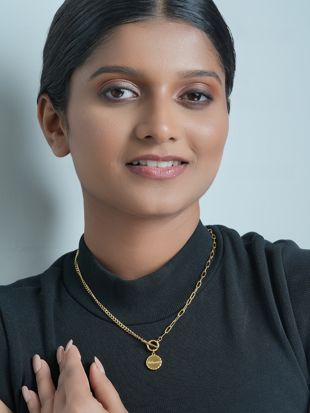 Carry a message of love with this 18K gold-plated "Beloved" engraved pendant necklace, perfect to gift your loved ones.