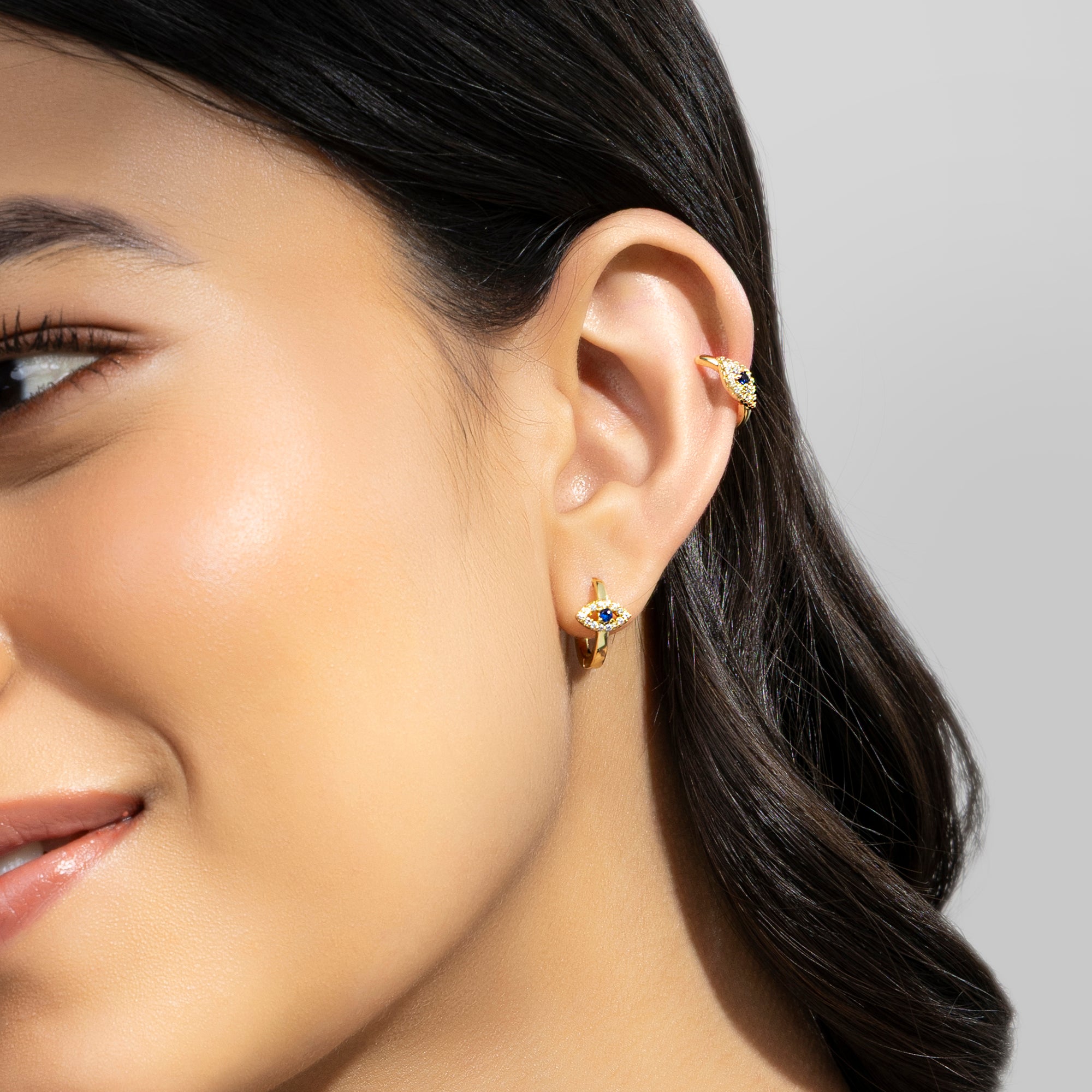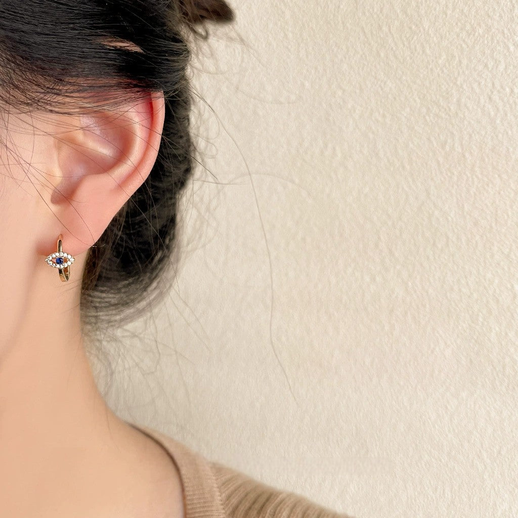 Twinkle Evil Eye Huggies (Single)| 18K Plated