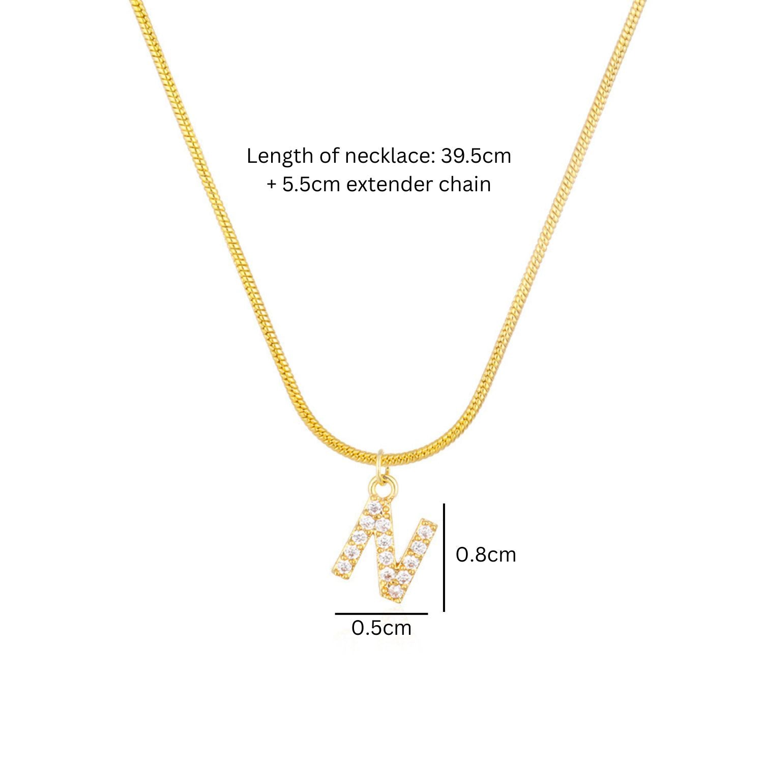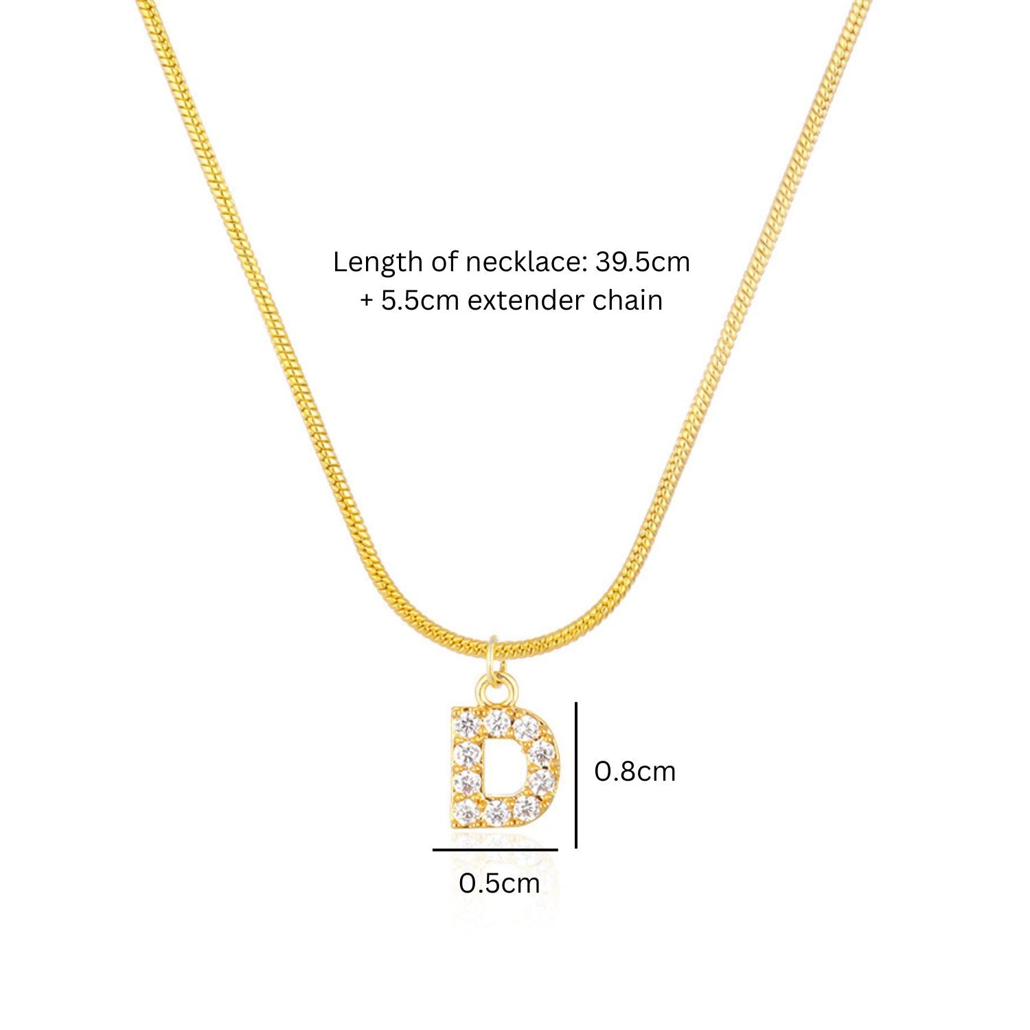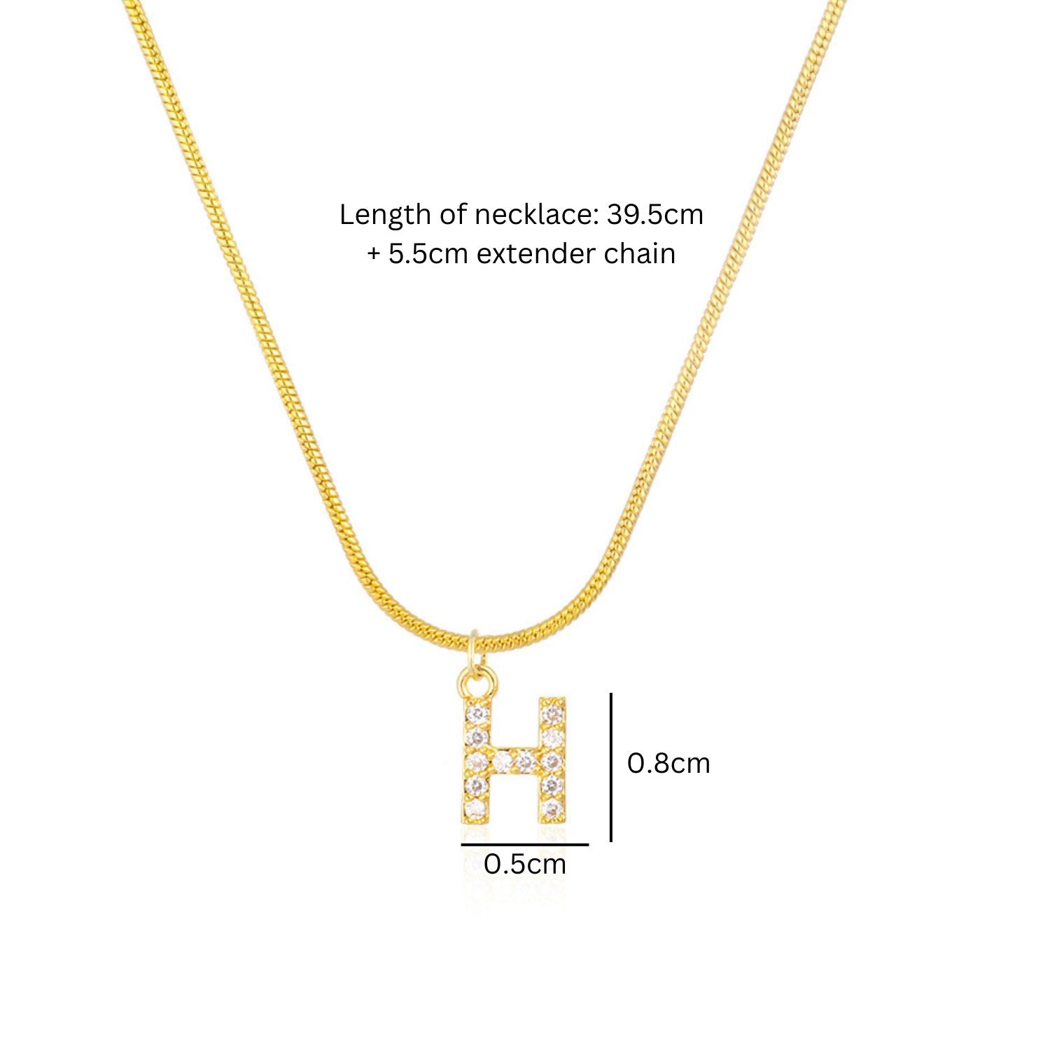 - Length of necklace: 39.5cm + 5.5cm extender chain, letter: 0.8x0.5cm